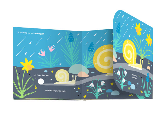 C’est ce qu’Elena Selena montre dans ce livre, expliquant les différentes étapes de la procréation, de façon très simple, à travers un jeu de rabats très original et différent à chaque double-page, et des illustrations scintillantes de fraîcheur.